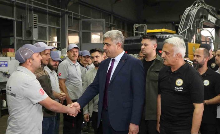 DÜZCE(İHA) –Vali Selçuk Aslan, şehrin en ücra köşesine kadar hizmet götüren gece gündüz demeden çalışan İl Özel İdaresi çalışmalarıyla şantiyede bir araya geldi.