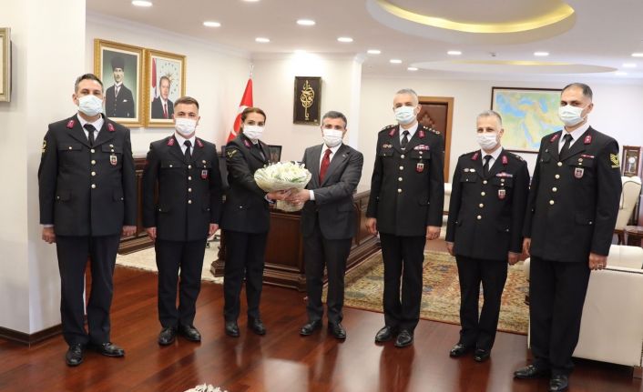 Düzce’de Türk Jandarma Teşkilatı’nın kuruluşunun 182. yıldönümü dolayısıyla tören düzenlendi. Komutanlar Vali Cevdet Atay’ı makamında ziyaret etti.