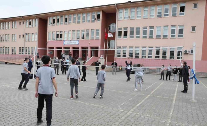 DÜZCE (İHA) – Düzce Valisi Cevdet Atay, okul bahçesinde voleybol ve futbol oynayan gençlerin isteklerini kırmayarak onlarla birlikte top oynadı.