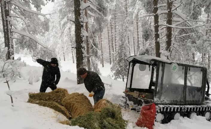 Düzce Doğa Koruma ve Milli Parklar Şube Müdürlüğü ekipleri, zorlu kış şartlarında yiyecek bulmakta zorlanan hayvanlar için yemleme çalışmalarına ara vermeden devam ediyor. Hafta sonu yağan kar yağışı ile havaların da iyice soğuması üzerine doğada yaşayan yaban hayvanlarının aç kalmaması için doğaya yem bırakılıyor. Ekipler yemleme çalışmalarında besi yemi ile ot-yonca yemlemesi yaptı.