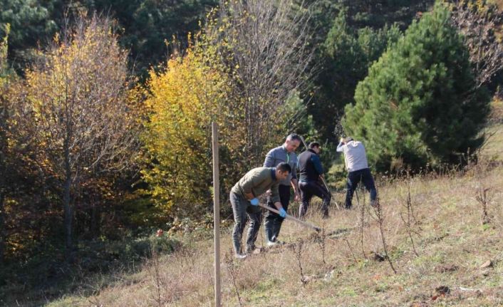 DÜZCE(İHA) –Düzce’de yaban hayvanları için yüksek kesimlere 175 adet elma, erik, kızılcık ve kuşburnu fidanı dikildi.