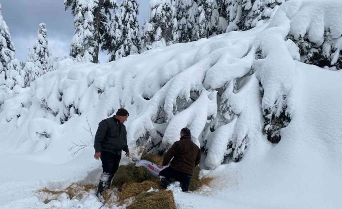 Yoğun kar yağışında yaban hayatı unutulmadı