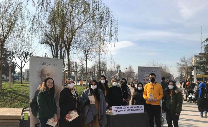 Prof. Dr. Fevzi Karademir danışmanlığında gerçekleştirilen etkinlikler çerçevesinde, Düzce Üniversitesi kampüsünde ve şehir merkezinde stantlar açan öğrenciler; sesi çağları aşan ve insanlığın ortak değeri haline gelen büyük şairimiz Yunus Emre ile İstiklal Marşımızın yazarı, vatan şairimiz Mehmet Akif Ersoy’un biyografilerini ve düşüncelerini özetleyen broşürler dağıttı.