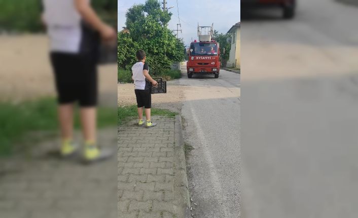 Düzce’de yuvadan düşen yavru kuşu bulan çocuk, itfaiye ekiplerine haber verdi. Yavru kuş yuvasına tekrar konuldu.