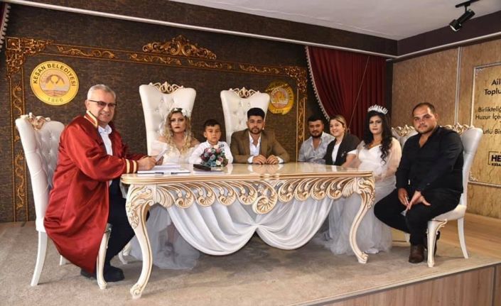 Edirne’nin Keşan ilçesinde, birbirlerinin nikah şahidi olan kuzenler 5 dakika arayla dünya evine girdi.