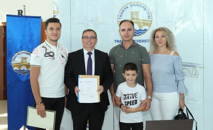 Aynı zamanda Trakya Üniversitesi Armağan Dönertaş Engelli Çocuklar Eğitim-Rehabilitasyon Uygulama ve Araştırma Merkezi’nde Sosyal Çalışmacı olarak görev yapan baba Harun Canarslan ve Almanca Öğretmenliği 2. sınıf öğrencisi anne Tülay Canarslan ailesinin 19 yaşındaki oğulları Kayra Çağ Canarslan’ın kaydını, Rektör Prof. Dr. Erhan Tabakoğlu gerçekleştirdi.