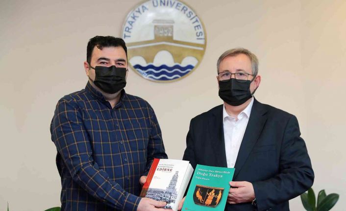 Trakya Üniversitesi Edebiyat Fakültesi Arkeoloji Bölümünden Dr. Öğr. Üyesi Ergün Karaca, “Tarih Öncesinden Cumhuriyete Edirne Üzerine Araştırmalar” ve “Milattan Önce Birinci Binde Doğu Trakya” kitaplarını Rektör Prof. Dr. Erhan Tabakoğlu’na sundu.