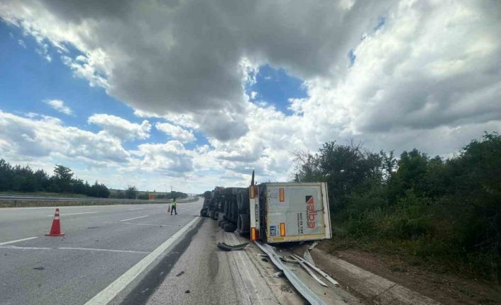 Edirne-Babaeski yolunda kontrolden çıkan tırın devrildiği kazada sürücü yaralandı.