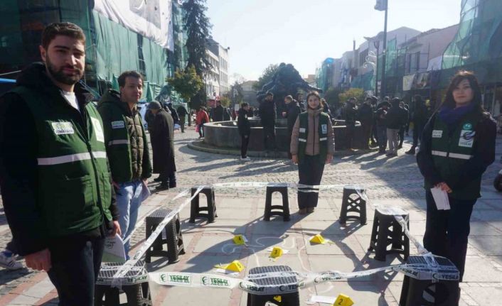 Edirne’de 9 Şubat Sigarayı Bırakma Günü etkinlikleri çerçevesinde Yeşilay tarafından sigaranın ölümcül izlerine dikkat çekmek amacıyla temsili olay yeri sahnesi oluşturuldu.