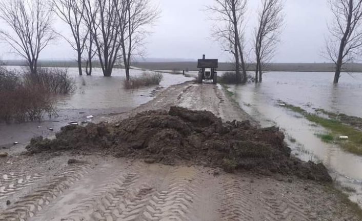 Edirne’nin İpsala ilçesinde aşırı yağışlardan dolayı baraj yolu sular altında kaldı, köy yolu geçici olarak ulaşıma kapatıldı.
