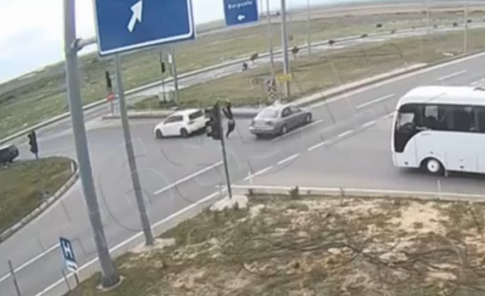 Edirne’nin İpsala ilçesinde Yunanistan uyruklu otomobil sürücüsünün, kırmızı ışık ihlali yaparak son hızla motosiklet sürücüne çarptığı kaza kameraya yansıdı.