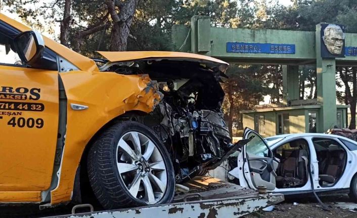 Kaza, bu sabah 08.45 sıralarında Keşan-Mecidiye yolu üzerinde meydana geldi. Edinilen bilgiye göre, Keşan’dan Mecidiye yönüne seyir halinde olan 22 T 4009 plakalı ticari taksi ile o sırada karşı yönden gelen 49 D 0607 plakalı araç kafa kafaya çarpıştı. Kazanın etkisiyle binek otomobil, yol üzerindeki askeri birliğin duvarına çarptı, ticari taksi ise karşısındaki tel örgülere savruldu.