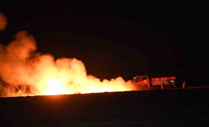 Yangında 100 dönüm buğday ekili alan zarar görürken, polis yangının çıkış sebebinin belirlenmesi için çalışma başlattı.