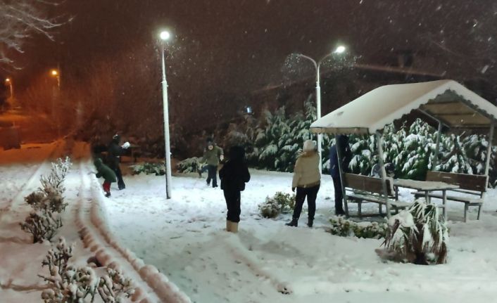 KEŞAN’DA KAR YAĞIŞINDA ÇOCUKLAR ANNE VE BABALARIYLA PARKLARDA KARTOPU OYNADI