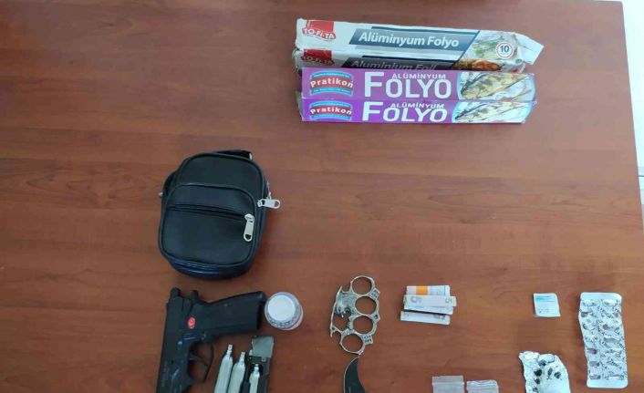 Polis tarafından durumundan şüphelenilerek durdurulan İ.G. isimli şahsın üzerinde 1 adet kuru sıkı tabanca, 1 adet bıçak, 1 adet muşta, 2 adet havalı tabanca ile 3 adet kilitli poşette eroin maddesi, 1 adet sentetik ecza ile uyuşturucu madde kullanımında kullanılan alüminyum folyo ele geçirildi. Şahıs hakkında soruşturma başlatıldı.