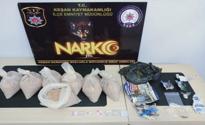 Edirne’nin Keşan ilçesinde bir adrese baskın düzenleyen polis, evde çok sayıda uyuşturucu madde ele geçirdi.
