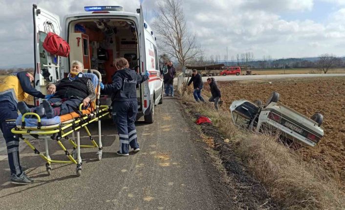 Kontrolden çıkan otomobil takla atıp tarlaya devrildi