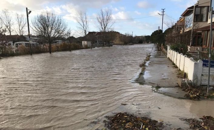 Edirne’nin Keşan ilçesinde şiddetli lodos sebebiyle deniz taştı. Yazlık evlerin bulunduğu sokaklarda ilerleyen deniz suları bazı binaların içine girdi.