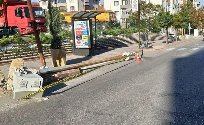 Manevra yapan tır çarptığı direği devirdi