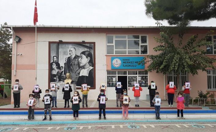 İzmir’de yaşanan deprem felaketi sonrası tüm Türkiye adeta tek yürek oldu. Edirne Merkez Meriç İlkokulu öğrencileri de ‘Yanınızdayız İzmir’ mesajı yazarak, birlik ve beraberlik mesajı verdi. Fotoğraf, sosyal medyada paylaşılmasının ardından çok sayıda beğeni ve takdir yorumları aldı.
