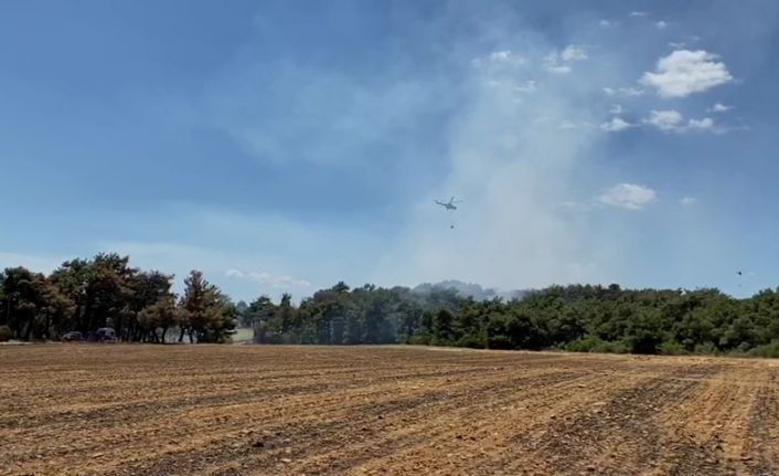 Saros Körfezi kıyısında bulunan ormanlık alanda yangın çıktı. Helikopter ve yangın söndürme araçları alevleri kontrol altına almaya çalışıyor.