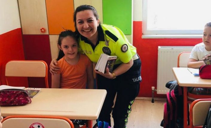 Denetimler sırasında Atatürk Bulvarı’ndan geçen bir okul servisi durduruldu ve ekipler araç içine girerek kontroller yaptı. Bu sırada, içerideki ilkokul birinci sınıf öğrencilerinden 2’sinin emniyet kemeri taktığı tespit edildi. Polis, emniyet kemeriyle ilgili uyarı yapmasının ardından diğer çocukların da emniyet kemerlerini takmalarını sağladı. Denetimin ardından, emniyet kemerlerini takan iki öğrenciyi sınıflarında ziyaret etti. Öğrencilere duyarlı davranışlarından dolayı teşekkür eden trafik polisleri, örnek davranışları vesilesiyle öğrencilere oyun hamuru hediye etti.