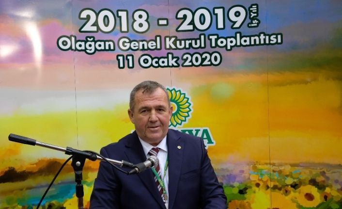 Toplantının açılış konuşmasını yapan Trakya Birlilk Yönetim Kurulu Başkanı Ahmet Akgün, 2018/2019 iş yılının başarılı geçtiğini belirterek, "2018/2019 iş yılı harman döneminde yüzde 40 randımanlı yağlık Ayçiçek tohumu için 2 milyon 320 bin TL/TON fiyat üzerinden yaklaşık 277 bin ton yağlık Ayçiçek tohumu mübayaasında bulunarak ortaklarımıza yaklaşık 685 milyon TL ürün ödemesi gerçekleştirilmiş tam zamanında açıklanan fiyat sayesinde bakanlığımızın da desteğiyle gümrük vergilerinin sıfırlanması yönündeki taleplerin önüne geçilmiş ve çiftçimizin cebine ton başına 200-250 tutarında ilave bir gelirin girmesi sağlanmıştır. Kullandırılan kredi toplamda 503 milyon TL’ye ulaşarak kurum tarihinin en yüksek kredi istihsalinin sağlandığı iş yılı olarak başarıyla tamamlanırken bu çerçevede karma yem ve rafine yağ satışlarında ulaşılan satış rakamları Birlik tarihinin en yüksek satış rakamları olarak tarihtekini yerini almıştır” dedi.