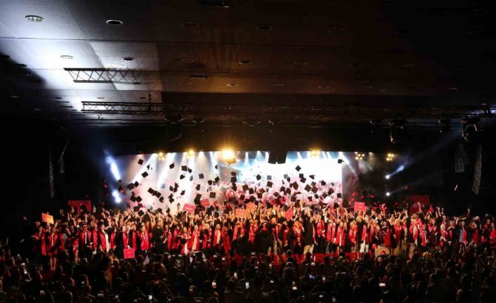 DOU Dans Kulübü’nün sergilediği performansın ardından sahneye çıkan öğrenciler Doğuş Üniversitesi Mezuniyet Andını okudu. 4 bine yakın öğrenci kep atarak mezuniyet sevincini kutladı.