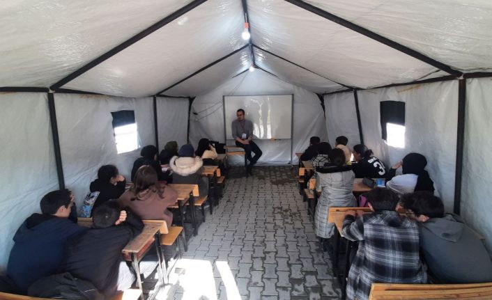 Adıyaman Beşpınar Kültür Eğitim ve Sosyal Destek Kampı’nda kurulan çadırlar öğrencileri ağırladı. Kamp alanında bulunan 60 çadırda bin öğrenci, servisler ile kamp alanına taşınıyor. Kamp alanında kurulan çadırlarda eğitim alan öğrenciler tekrar servisler ile bulundukları çadır veya konteyner kentlere bırakılıyor. DYK kursları Milli Eğitim Müdürü Ramazan Aşçı tarafından yapılan açılış konuşmasının ardından depremde hayatını kaybedenler için saygı duruşunda bulunulması ve İstiklal Marşı’nın okunmasının ardından öğrencilerin sınıflara girmesiyle başladı.