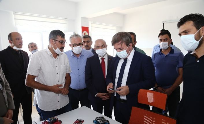 TOBB bünyesindeki Endüstri Meslek Lisesini gezerken organize sanayi bölgesindeki müteşebbislerle bir araya geldiklerini ifade eden Vali Aydoğdu, “Mademki Aksarayımızın nitelikli ara eleman yetiştirme gibi bir problemi var, o zaman biz el birliğiyle bu problemin çözümünü bulmamız gerekiyor. Bugün ne yaptık? Şunu yaptık. Bütün odalarla ve sanayicilerimizle beraber bundan sonra TOBB Endüstri Meslek Lisesini tercih edecek bütün öğrencilerimize sanayicilerimiz burs verecek. Bu okulu tercih eden bütün öğrencilerimiz burs alacak. Yetmez, peki ne yapıyoruz? Aynı zamanda protokolünü de imzaladık. Endüstri meslek lisemizi tercih eden bütün öğrencilerimize müteşebbislerimiz iş garantisi veriyor. Öğrencimiz okula başlarken bursunu alacak, eğitim öğretim boyuncu bursu devam edecek. 3. sınıfta, 4. sınıfta organize sanayi bölgesinde stajlarını yapacak” şeklinde konuştu.