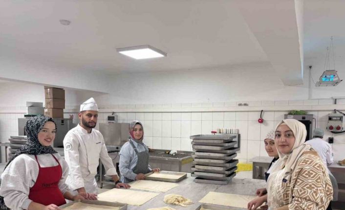 Şef Mahmut Dolmacı’ya ait baklava börek imalathanesinde gerçekleştirilen eğitimde kursiyerler; hamur hazırlanmasından iç harcın oluşturulmasına, şekil verme ve pişirme aşamalarına kadar tüm süreci birebir deneyimleme fırsatı buldu. İmalathane ortamında yapılan uygulamalar sayesinde kursiyerler mesleki becerilerini geliştirirken, hijyen ve üretim standartları konusunda da bilgilendirildi.