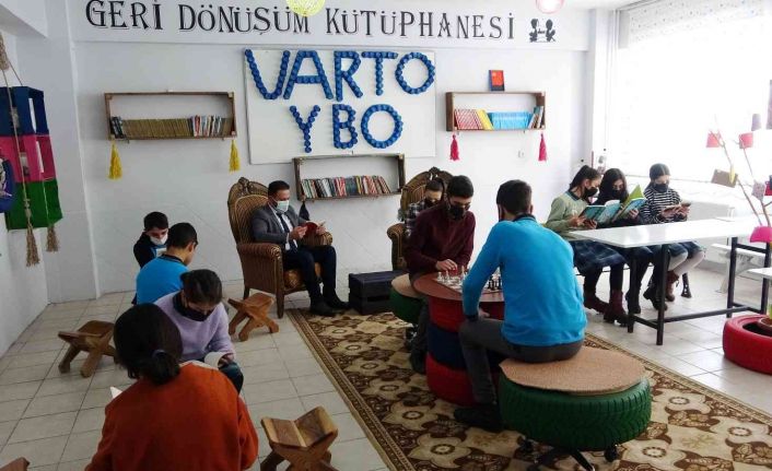 Okul Müdürü Alper Akkaya da, okulda 4 bin kitaplı büyük bir kütüphanelerinin olduğunu ve geri dönüşüm kütüphanesini de öğrencilerin farklı bir pekiştirme ortamında kitap okumalarını sağlamak için oluşturduklarını söyledi. Öğrencilerin okul ortamından çok farklı bir ortamda kitaplarını okuduklarını vurgulayan Akkaya, “Bir haftada oluşturduğumuz kütüphanemizde 800 kitap var. Atıl durumdaki meyve kasaları, tekerlekler ve ağaçları kullanarak böyle bir kütüphane oluşturduk. Amacımız geri dönüşümün önemini fark etmek ve farklı bir ortamda çocuklara okuma alışkanlığı kazandırmaktır” diye konuştu.