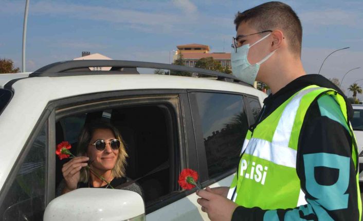 Ayvalık’ta İlçe Emniyet Müdürlüğü bünyesindeki Trafik Büro Amirliği ekipleri tarafından okulların öğrencilerinin de katılımıyla gerçekleşen uygulamalar kapsamında; okul çıkışlarındaki yaya geçitlerinde öğrencilerin geçişine öncelik veren sürücülere polis ekipleri ve öğrenciler tarafından karanfiller hediye edildi. Kasım ayı boyunca sürecek kampanya vatandaşlar ve öğrenci velileri tarafından da memnuniyetle karşılandı.