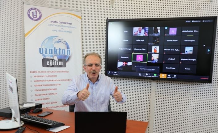 Öğrencilerin interaktif şekilde katıldığı uzaktan eğitimlerde ilk dersi Bartın Üniversitesi Rektörü Prof. Dr. Orhan Uzun verdi. Öğrencilere seslenen Rektör Uzun, “Hepiniz içinde bulunduğumuz bu zor dönemde tüm Türkiye’ye örnek olacak bir hassasiyet gösteriyorsunuz. Evlerinizde kalarak, fedakârca çalışan sağlıkçılarımıza,, ülkemizde gösterilen bu önemli mücadelede ‘Sorun küresel, mücadele ulusal’ diyerek destek veriyorsunuz. Bizler de bu süreçte sizleri geleceğe en iyi şekilde hazırlanmak ve ‘Her anı birbirimizden öğrenerek’ devam ettiğimiz bu yolculukta yalnız bırakmamak için var gücümüzde çalışıyoruz. Uzaklaştıkça yakınlaşıyor ve aramızdaki mesafeleri gönül bağımız ile geleceğe olan inancımız birlikte kapatıyoruz" dedi.