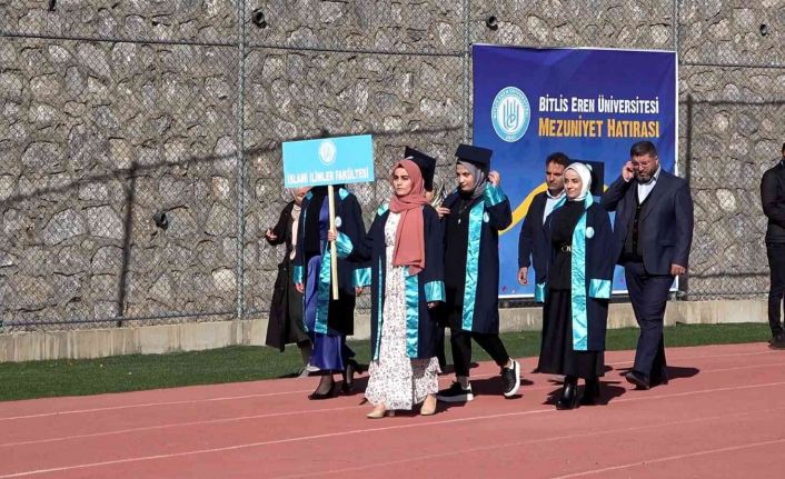 Tüm dünyada ve Türkiye’de etkisi devam eden korona virüs tedbirleri kapsamında geçen yıl Bitlis Eren Üniversitesinde çeşitli bölümlerden mezun olan öğrencilere 1 yıl gecikmeli olarak mezuniyet töreni düzenlendi. Saygı duruşu ve İstiklal Marşı’nın okunmasıyla başlayan program açılış konuşmalarıyla devam etti. Bitlis Eren Üniversitesinde çeşitli bölümlerden mezun olan yaklaşık bin 972 öğrenci gecikmeli olarak mezuniyet sevinci yaşadı.