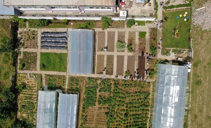 Görenlerin hayran kaldığı hobi bahçesinde öğretmenler ve öğrenciler tarafından onlarca çeşit sebze ve meyve yetiştiriliyor.