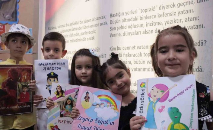 Kayseri’de anaokulu öğrencilerinin kendi yazdıkları kitapları imzaladığı kitap fuarı yoğun ilgi gördü.