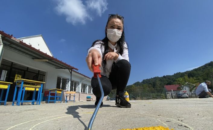 Okulda sınıf öğretmenliği yapan Dicle Say, uzun bir süre sonra öğrencilerle buluşacak olmalarından dolayı heyecanlı olduklarını belirterek, ”Öğrencilerimizin sosyal mesafeli sıralara girebilmeleri için dairelerimizi boyuyoruz. Pazartesi günü okulları açacağız inşallah. Onun heyecanını yaşıyoruz. Sınıflarımız içindeki sıralarımızı boyadık. Okul içerisinde hijyen, sosyal mesafe yazılarımızı, çocuklarımızın hangi kurallara uyması gerektiğini gösteren yazıları hazırladık. Onlara en güvenli şekilde okulumuzu açabilmek için bütün elimizden gelen her imkanı sağladık onlara. Heyecanlıyız çünkü çok uzun zaman oldu. Bu kadar hiç öğrencilerden uzak kalmamıştık. Masaları boyuyoruz, bunları ben öğrencilerimin olduğu gruba atıyorum. Dışarıdaki daireleri boyuyorum, gruptan atıyorum, çok seviniyorlar, çok heyecanlanıyorlar" dedi.