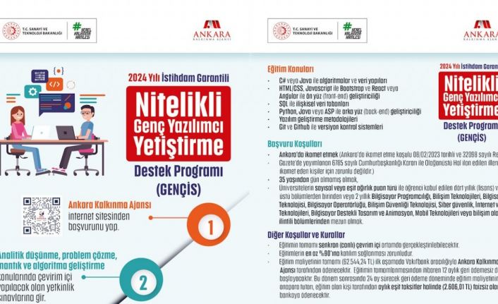 Ankara Kalkınma Ajansı tarafından yapılan yazılı açıklamaya göre, gençlerin nitelikli istihdamını artırmak amacıyla başlatılan ‘Genç İstihdamı Projesi’ ile yazılım sektöründe 35 yaşından gün almamış 178 genç, yeni kariyer fırsatları ile buluşacak. Ankara ve 2023 yılında deprem nedeniyle olağanüstü hal ilan edilen illerde ilan eden, 35 yaşından gün almamış olan ve üniversitenin sayısal veya eşit ağırlık puan türü ile öğrenci kabul eden 4 yıllık lisans veya üstü bölümlerden ya da 2 yıllık bilişim alanıyla ilgili bölümlerden mezun olanlar uygun başvuru kriterine sahip olarak değerlendirilecek. Çevrimiçi ortamda gerçekleştirilecek eğitimlerin en az yüzde 90’ına katılım zorunlu olacak. Projenin toplam bütçesi 11 milyon 132 bin 872 lira olarak belirlenirken kişi başın destek tutarı 62 bin 544 lira olarak yüzde 100 ajans faiz destek oranıyla verilecek.