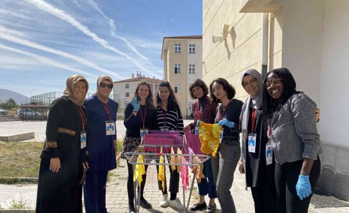 Niğde Şehit Kemal Tosun Anadolu İmam Hatip Lisesi’nde Erasmus gençlik projesi ’Wuste’ çerçevesinde öğrenciler, ceviz, zencefil, pancar gibi gıda atıklarından boya üretiyor.