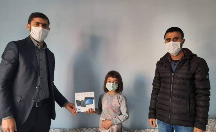Mardin’in Mazıdağı ilçesine tableti olmadığı için 1 kilometre yol yürüyüp arkadaşının evinde canlı derse katılan 7 yaşındaki Şeymanur’a tablet hediye edildi.