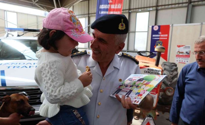 Aksaray’da düzenlenen 6. Uluslararası Tarım ve Hayvancılık Fuarı’nda jandarma standında çocuklara kitap dağıtan İl Jandarma Komutanı Hacı Ali Büber, jandarmanın faaliyetlerini anlattı.