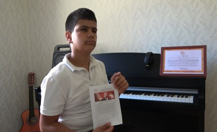 Muş’ta duyduğu sesleri notaya dökebilme yeteneğine sahip 11 yaşındaki görme engelli Bager Çalışcı, karne gününü piyano çalarak kutladı.