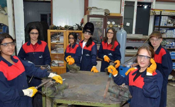 Manisa’nın Kırkağaç ilçesinde Mesleki ve Teknik Anadolu Lisesi Metal Teknolojisi Bölümü’nde eğitim gören 7 kız öğrenci, ileri düzeyde kaynak yapıp, örste demir dövüyor, direnç kaynağı, oksigaz kaynağı, elektrik ark kaynağı, gazaltı kaynağı ve tig kaynağı yöntemlerini uygulayarak, erkek mesleği olarak bilinen kaynakçılıkta ön yargıları kırıyor.