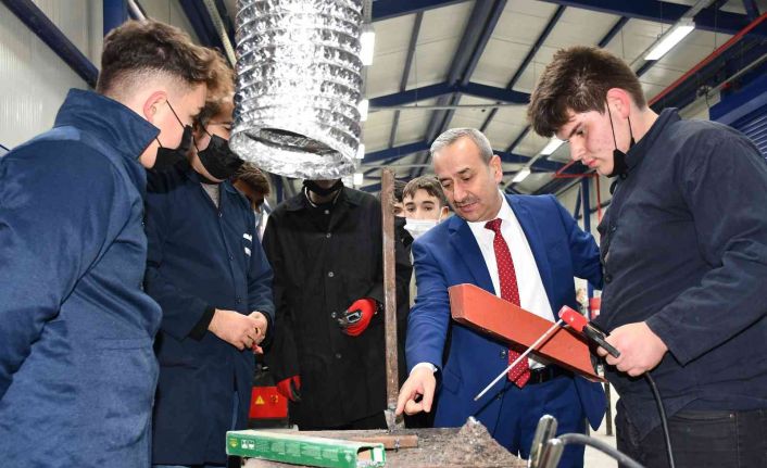 Okul Müdürü Mahir Emre Doğuş ise okullarının 2016 yılından itibaren yapmış oldukları projelerle ilde ve bölgede başarılı çalışmalar ortaya koyduklarını anlattı. Okulun şuana kadar 16 tane ERASMUS projesi kabul edildiğini kaydeden Doğuş, “Bu projeler kapsamında okulumuz öğrencileri ve öğretmenlerimiz alanları ile ilgili eğitim alma şansı yakalamışlardır. Burada öğrencilerimiz özellikle iç piyasanın istediği, makine ekipmanlarda çalışarak onların taleplerini karşılayacak şekilde iş gücü piyasasını karşılamaya çalışıyoruz” ifadelerine yer verdi.