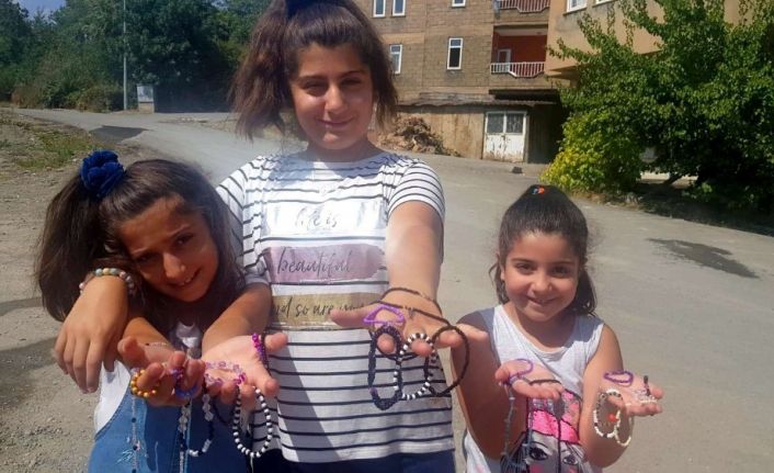 Hakkarili 3 çocuk, ailelerinden aldıkları harçlıklarla boncuklardan kolye, künye, yüzük ve küpe yapıp mahallede kurdukları “Minik Eller Takı” standında satıp elde ettikleri parayla da dar gelirli öğrencilere kırtasiye yardımında bulunuyor.
