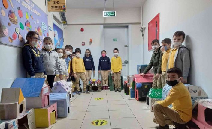 Bursa’nın Orhangazi ilçesinde, minik öğrenciler, ‘Sokaktaki dostlarımız’ adı verilen sosyal sorumluluk projesi kapsamında, kış aylarında üşüyen kediler için yüzü aşkın yuva yaptı.