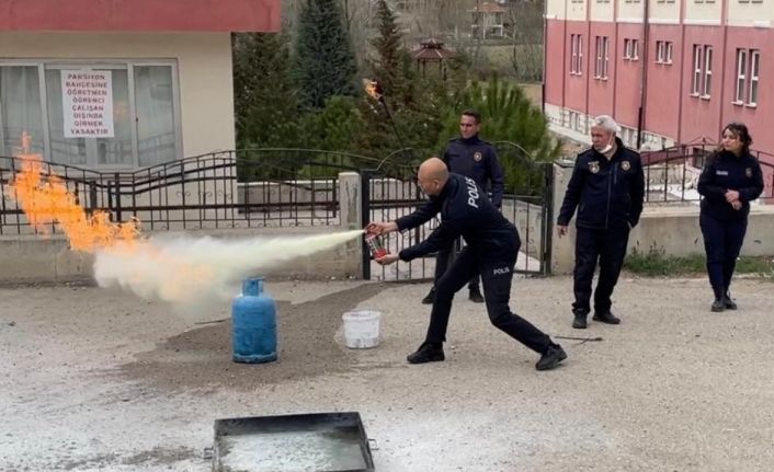 Teorik eğitimin ardından, tüp gaz, akaryakıt, katı yakıt, petrol türevi yakıtlarla ilgili olarak yanan malzemelere müdahalenin nasıl yapılması konusunda tüm kursiyerlere yangın söndürme tatbikatı ve uygulaması yaptırıldı. Tatbikatta, İlçe Emniyet Müdürü Erol Ünlü’nün de bizzat yangın söndürme tüpüyle söndürme müdahalesi yaptığı görülürken, Çarşı ve Mahalle Bekçileri Emre Tengiç ve Mehmet Kartal’ın yangın söndürmedeki becerisi de kursiyerlerden alkış topladı.