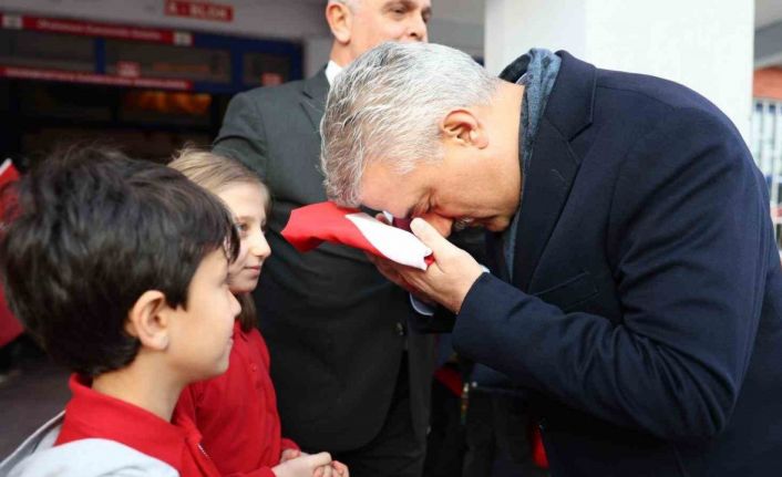 Düzce’de ikinci dönemin ilk gününde okullarda "bayrak sevgisi" teması işlendi. Düzce Valisi Mehmet Makas’ta Uzunmustafa İlkokulu’nu ziyaret ederek öğrencilerle bayrak buluşması yaptı.
