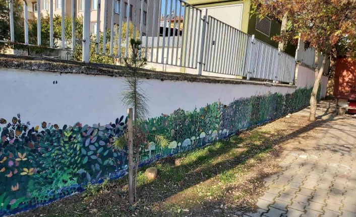 Bursa’nın İznik ilçesinde öğrenciler okul bahçesinin duvarlarını çiçek resimleriyle süsledi.
